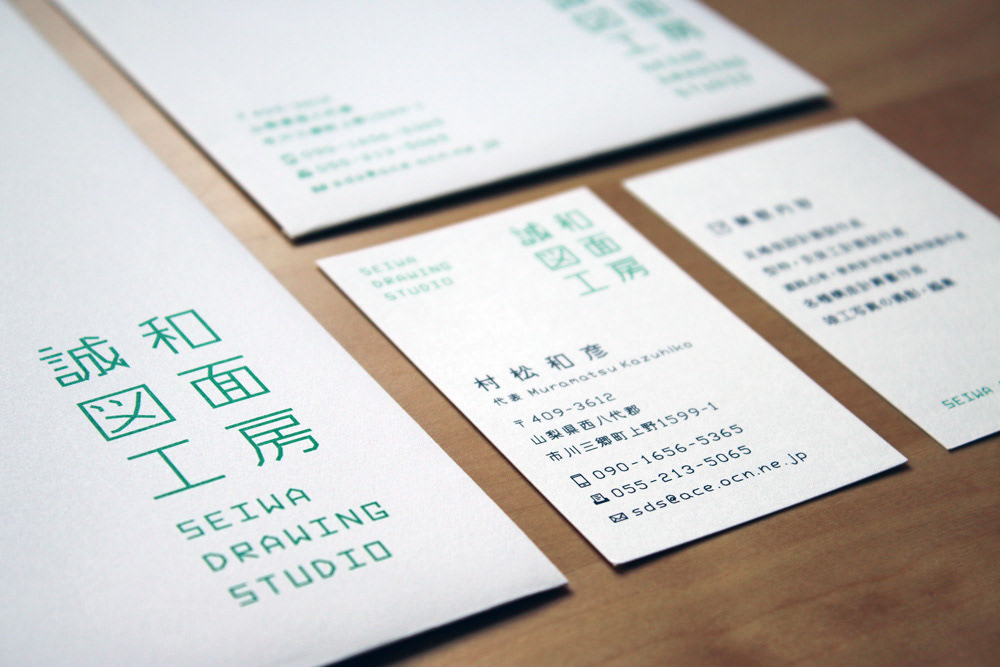 誠和図面工房 商工会青年部の同志でもある村松和彦さんが代表を務める誠和図面工房様のロゴタイプ、名刺や封筒などを作らせていただきました。